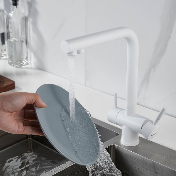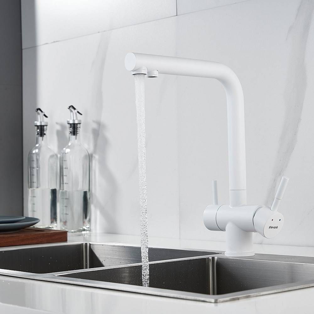 Смеситель для кухни Shevanik S468C с подключением фильтра белый купить