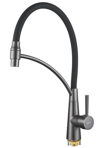Смеситель для кухни с подключением фильтра Shevanik S743T-3, оружейная сталь/черный.Управление: рычажное.Вращение излива: да.Выдвижной излив: нет.Гибкий излив: да.Высота:44.