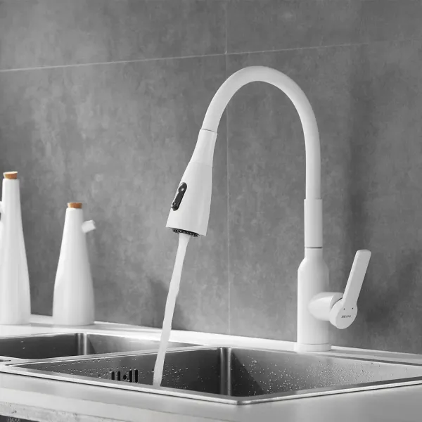 Смеситель для кухни с гибким изливом Shevanik S843C-1, белый.Управление: рычажное.Вращение излива: да.Выдвижной излив: нет.Гибкий излив: да.Высота:45.