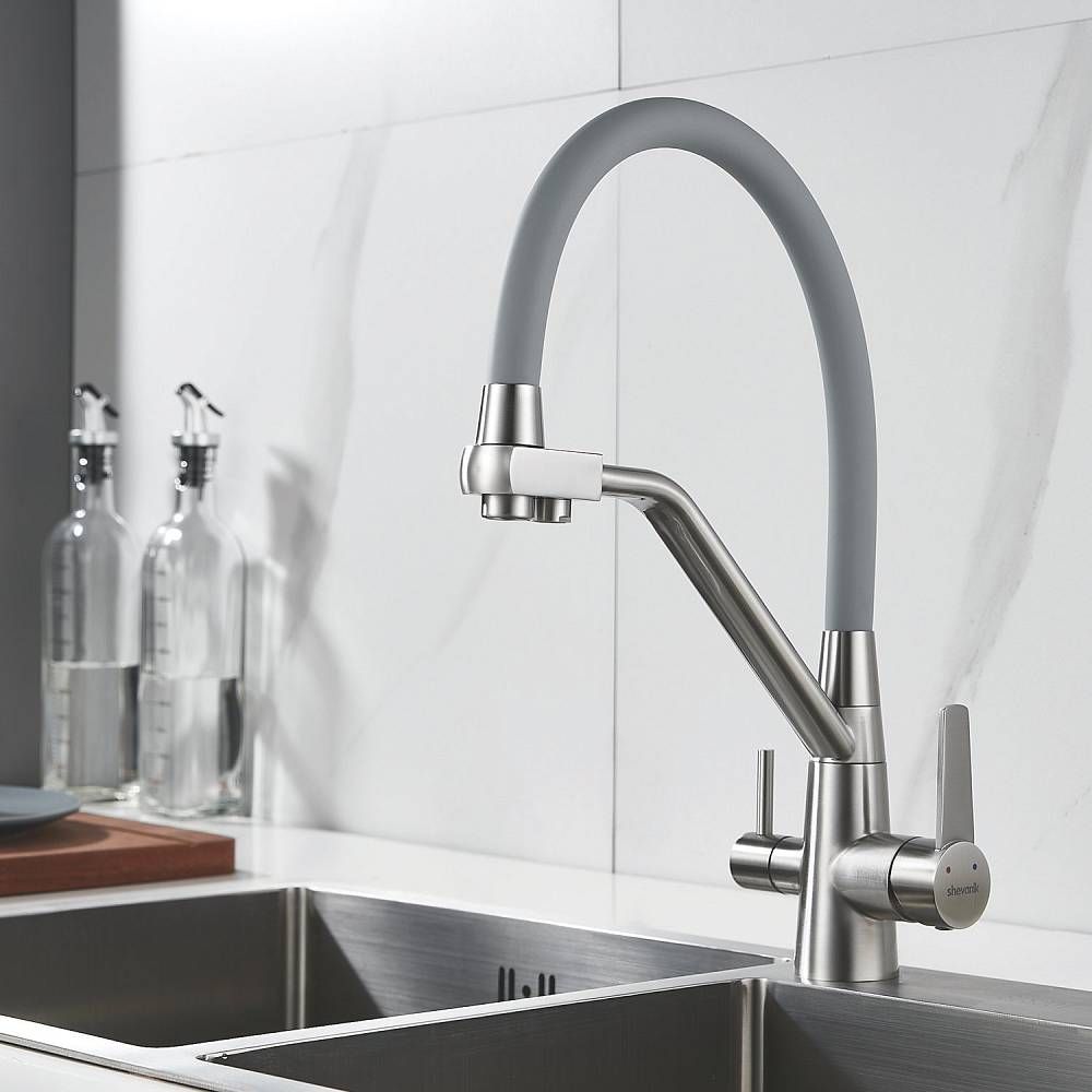 Смеситель для кухни Shevanik S968L с подключением фильтра сатин купить