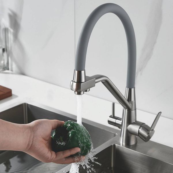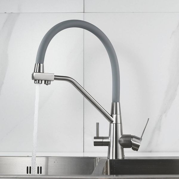 Одним из ключевых преимуществ смесителя Rose является возможность подключения фильтра для воды. Теперь у вас всегда будет доступ к чистой и свежей воде прямо из вашей мойки. Дополнительный излив служит не только для подачи фильтрованной воды, но и как держатель для гибкого излива, когда тот не используется, что добавляет удобства в повседневном использовании.