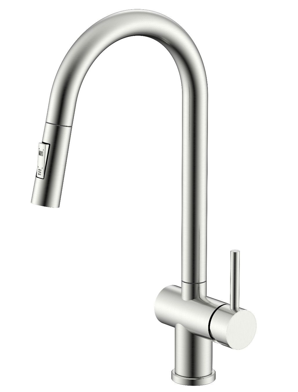 Смеситель для кухни с выдвижным изливом Splenka S204.49.05. Цвет: сатин. Смеситель для кухни с выдвижным изливом из нержавеющей стали. Излив смесителя оснащен аэратором, что обеспечивает экономичный расход воды. Излив поворотный и выдвижной. Механизм смесителя: керамический картридж. Управление рычажное. Подводка гибкая 1/2. Режимы лейки: 2. Данная модель отличается своей долговечностью и хорошим качеством.