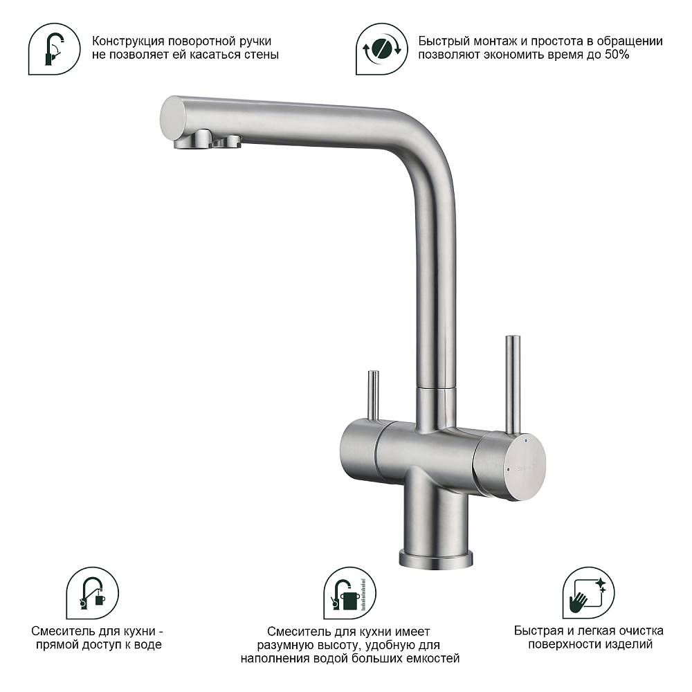 Смеситель для кухни Splenka S70.61.05 с подключением фильтра сатин купить