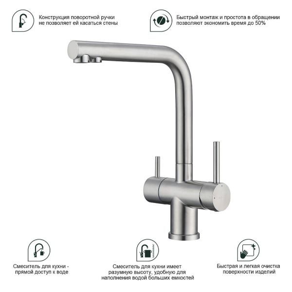 Смеситель для кухни Splenka S70.61.05 с подключением фильтра сатин