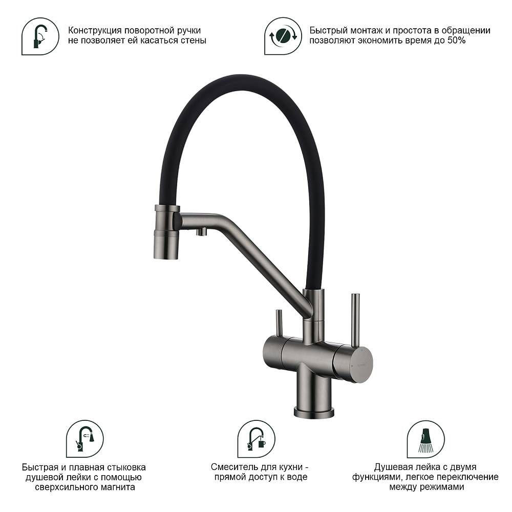 Смеситель для кухни Splenka S70.62.09 с подключением фильтра графит