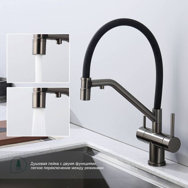 Смеситель для кухни Splenka S70.62.09 с подключением фильтра графит купить
