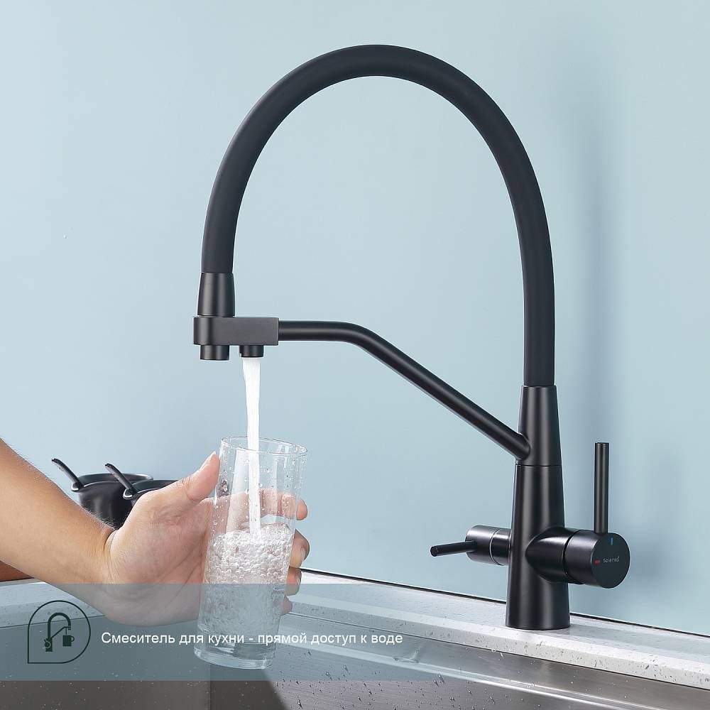 Смеситель для кухни Splenka S71.62.06 с подключением фильтра чёрный купить