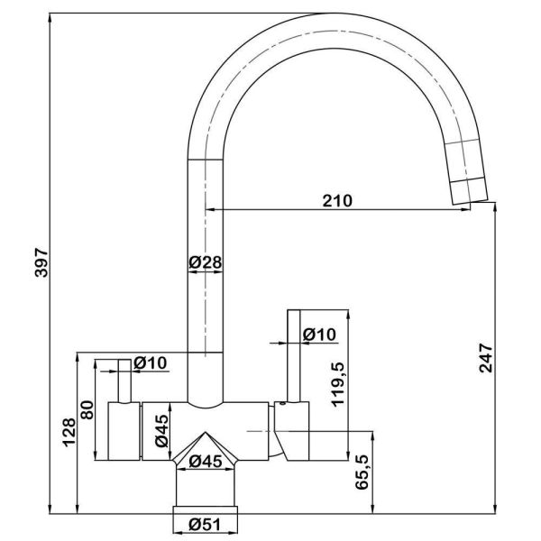 Смеситель для кухни с каналом для подключения фильтраИзлив с поворотом 360 градусов.Изготовлен полностью из пищевой нержавеющей стали (SUS304).Изолированный отдельный канал для фильтрованной воды.Керамический картридж Sedal.Аэратор Neoperl с выделенным каналом для фильтрованной воды.Гибкая подводка SoftPEX.