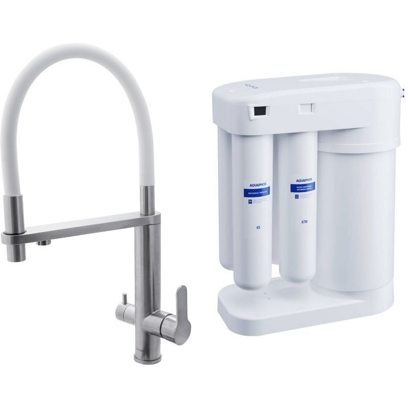 Смеситель для кухни Swedbe Selene Plus 8441M в комплекте с фильтром Аквафор Морион нержавеющая сталь/белый купить