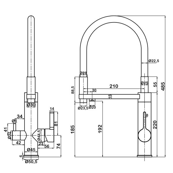 • Выдвижной излив: