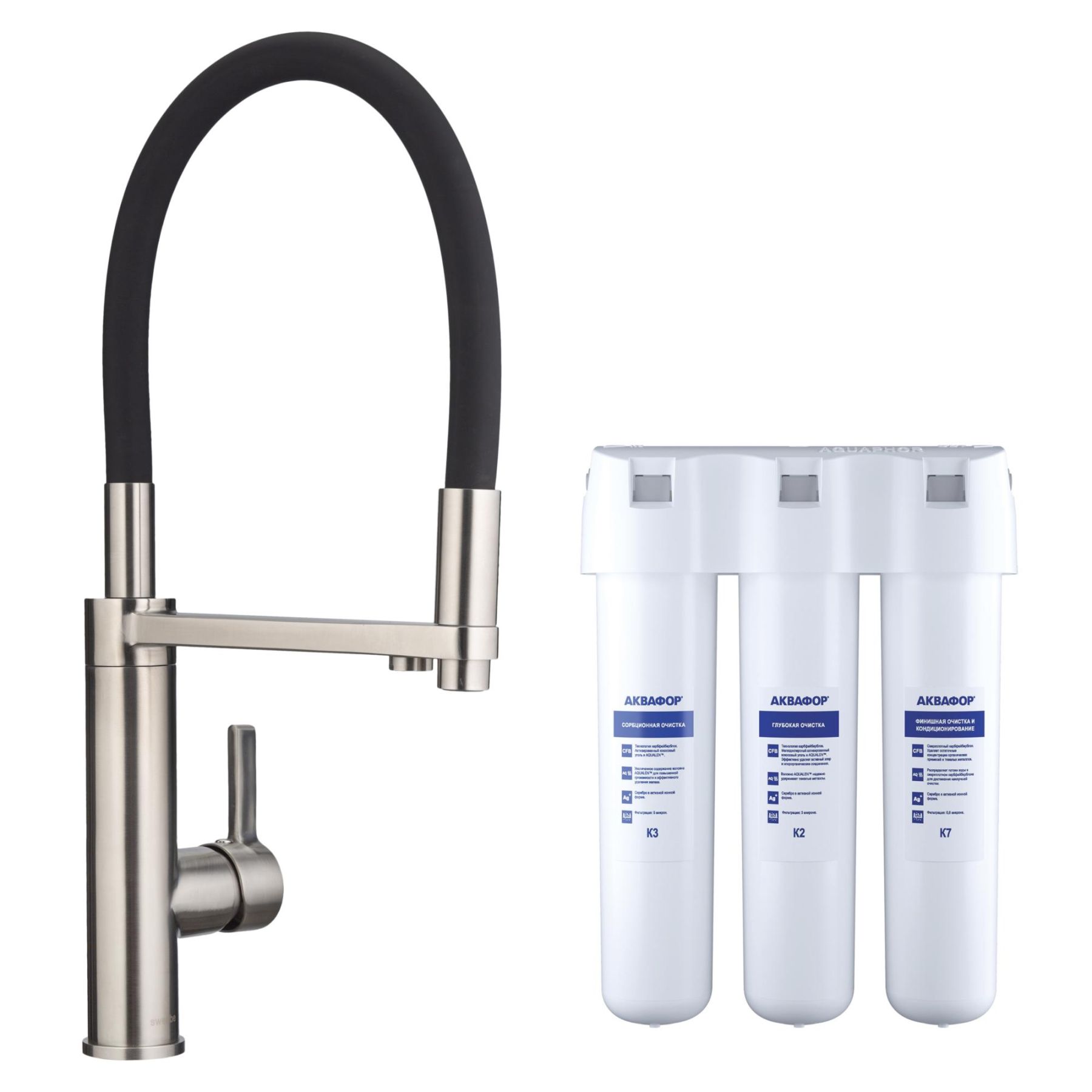 Смеситель для кухни Swedbe Selene Plus 8640K в комплекте с фильтром Аквафор Кристалл нержавеющая сталь/чёрный купить