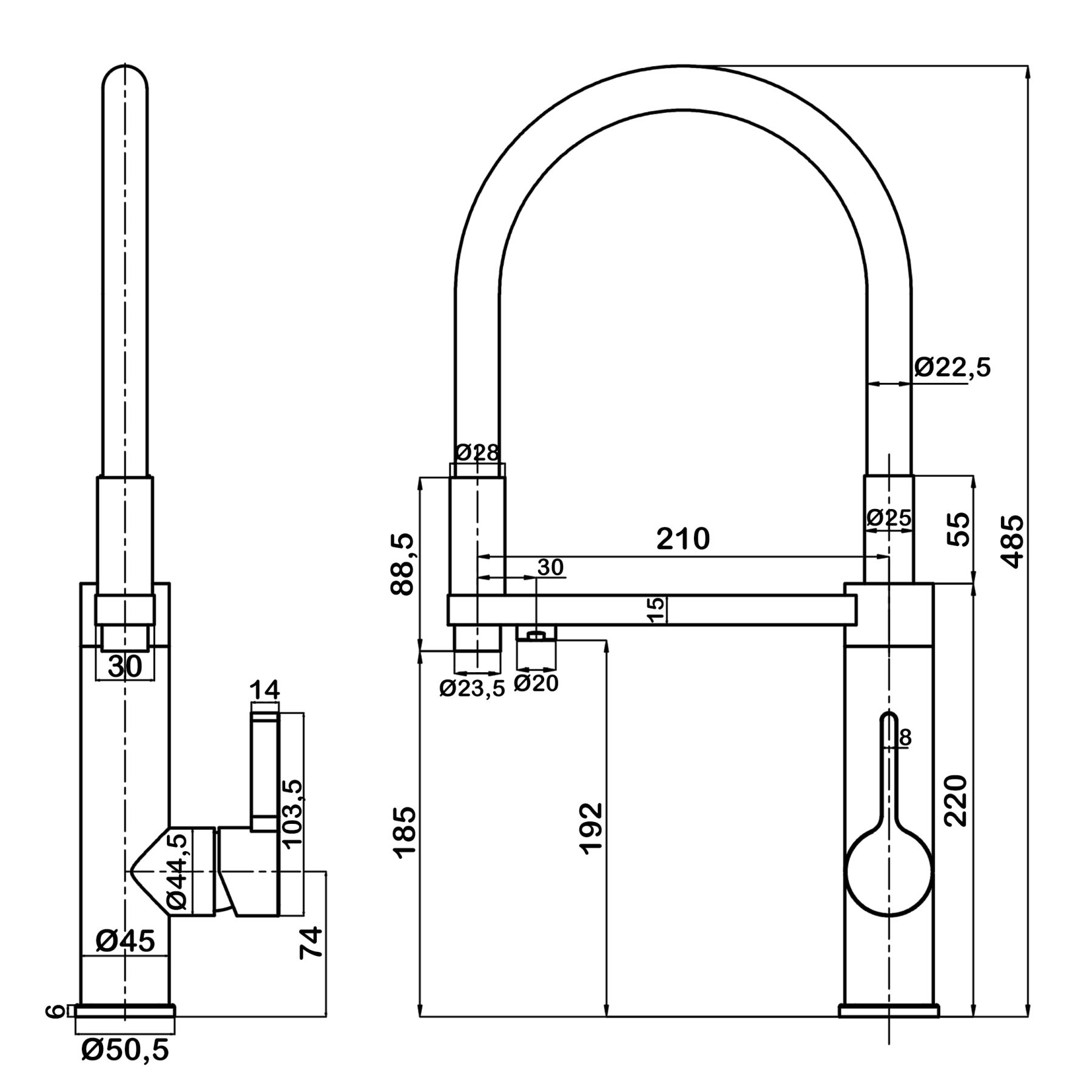 Высота смесителя:48.5