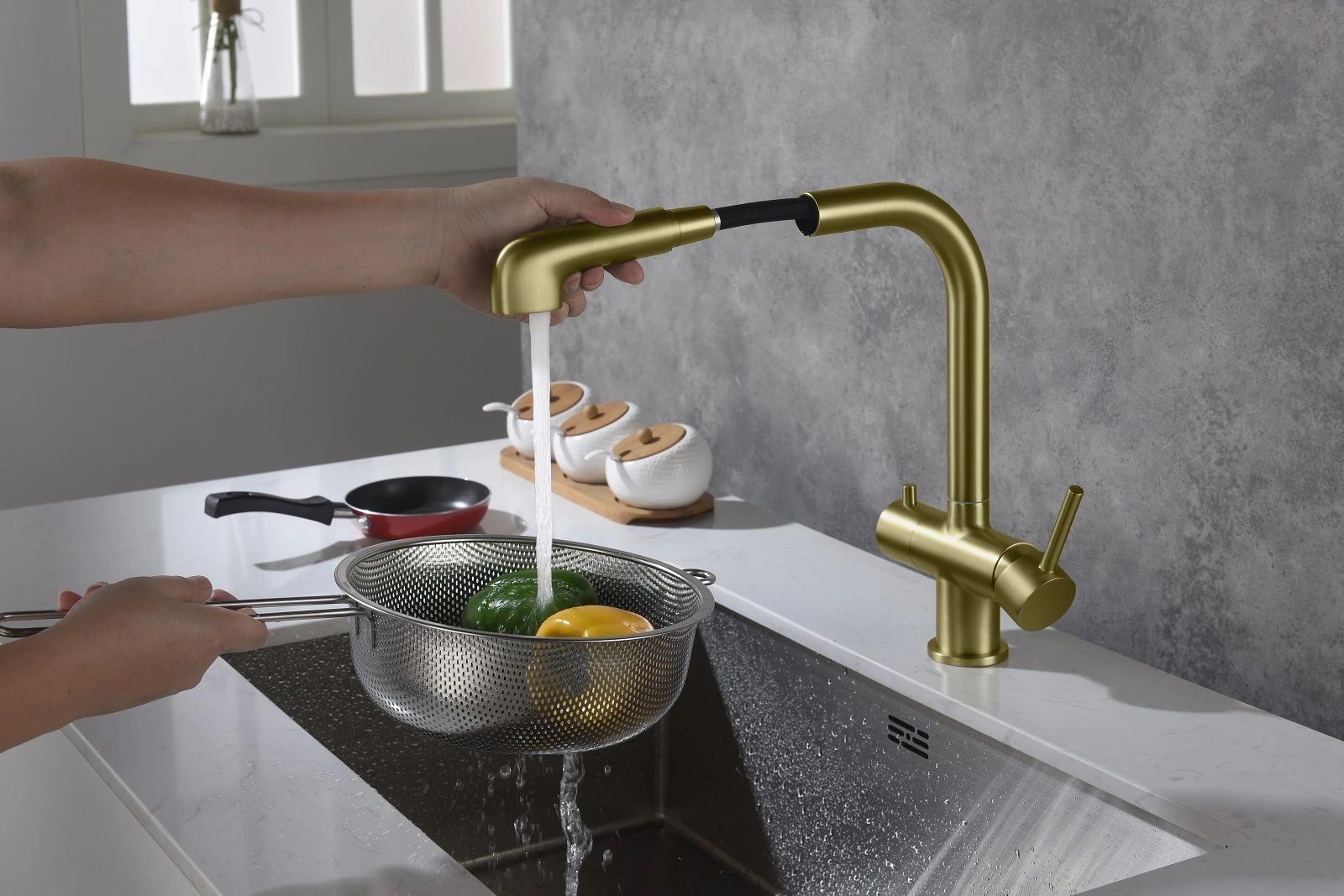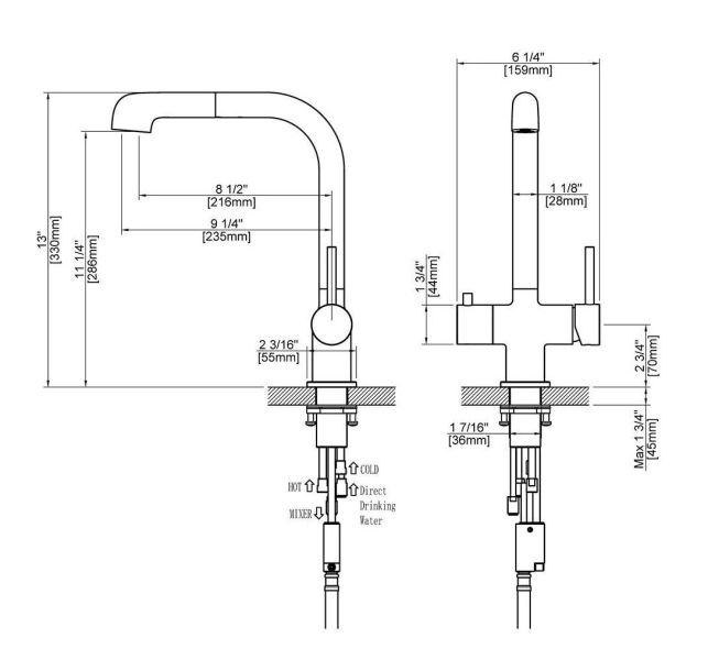 Цвет "матовое золото" никогда не выйдет из моды, во все времена драгоценный металл был признаком богатства. Смеситель Timo Saona 2346 с выдвижной лейкой и системой подключения фильтрованной воды относится к премиальному сегменту, предназначен для монтажа на кухонную мойку или столешницу. Высокий излив подходит для моек с двумя чашами, а также позволяет справляться с мытьем габаритной посуды. Удобное (вертикальное) расположение рычага смесителя в крайнем положении "холодный старт", позволяет не задевать ручкой за стеновые панели, фартук, предметы, которые находятся за смесителем. Картридж с функцией "холодный старт" работает в диапозоне 90 градусов, рычаг установленный в исходное положение (вертикально) при открытии подает только холодную воду, а не 50% холодной воды плюс 50% горячей, позволяя экономить до 30% расход горячей воды. Для подачи горячей воды необходимо повернуть рычаг на себя. Выдвижная лейка с прочным шлангом длинной 400мм облегчает мытье раковины, крупной посуды, позволяет набрать воду в емкость, стоящую рядом с мойкой. Встроенный магнитный держать позволяет легко вернуть лейку в исходное положение. В нижней части смесителя установлена трубка с адаптером для соединения с трубкой фильтра. Подача фильтрованной воды осуществляется поворотом ручки дивертора расположенной слева на корпусе смесителя. Сложностей монтажа не возникает при установке смесителя опытным сантехником. Внимательно изучите инструкцию по монтажу и эксплуатации.