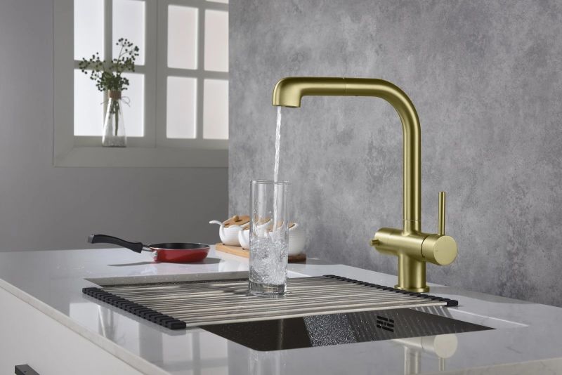 Смеситель для кухни Timo Saona 2346/17FL с подключением фильтра и выдвижной лейкой золото матовое