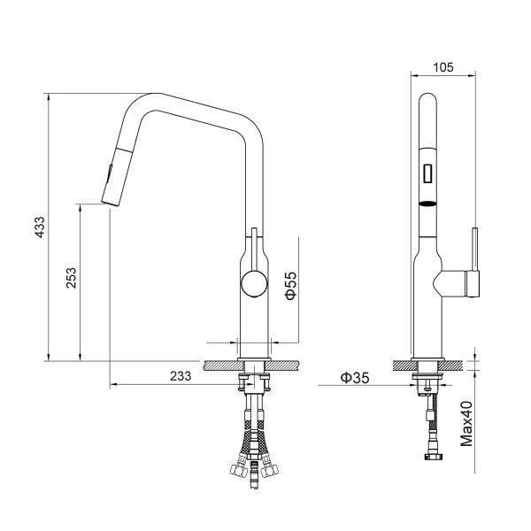 • Выдвижной излив: