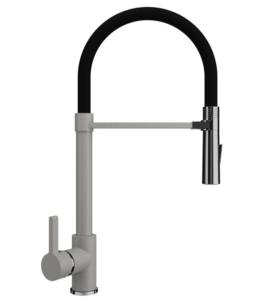 Смеситель для кухни Ulgran Classic U-024-310 с высоким гибким изливом серый