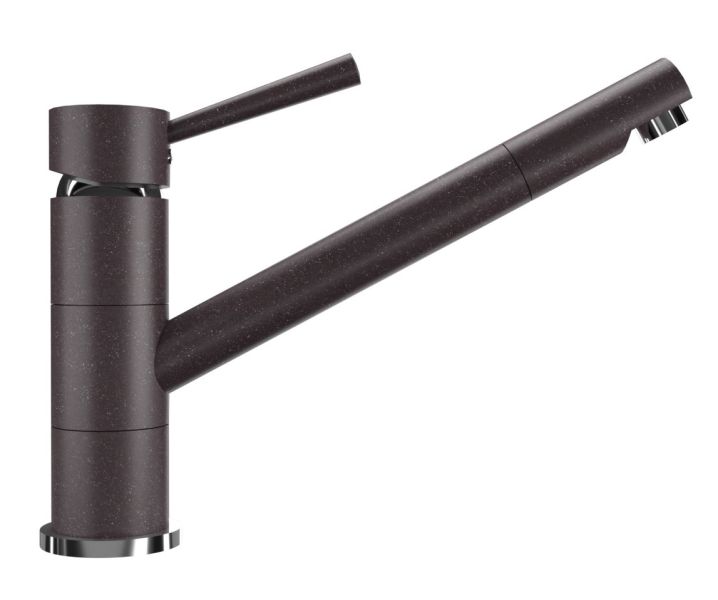 ULGRAN U-025 – удобный классический кухонный смеситель с низким поворотным изливом. Материал корпуса выполнен из высококачественной латуни, а окрашивание под «искусственный камень» в цвет мойки ULGRAN выполняется на собственном производстве, что позволяет идеально попасть в фирменный цвет ULGRAN. В качестве керамического картриджа используется известный бренд Wanhai диаметром 40 мм с высокой пропускной способностью в 500 тысяч циклов «открывания-закрывания». На подвижные части картриджа Wanhai нанесена специальная невымываемая силиконовая смазка, а керамические пластины изготовлены из 96% оксида алюминия, что, в сочетании с высоким качеством шлифовки обеспечивает долговечность, надежность, плавность хода рукоятки. Смеситель оборудован съемным пластиковым аэратором для экономии воды и поворотным изливом на 180 градусов. В комплектацию входят: керамический картридж Wanhai, гибкая подводка 450 мм, комплект крепежных элементов, технический паспорт и гарантийный талон. Заводская гарантия составляет 3 года на материал корпуса, 1 год на комплектующие к смесителю и 1 год на материал покрытия.