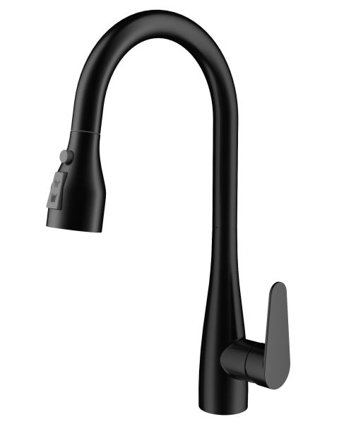 Смеситель для кухни Wonzon & Woghand WW-121E201B-MB с выдвижным изливом чёрный матовый