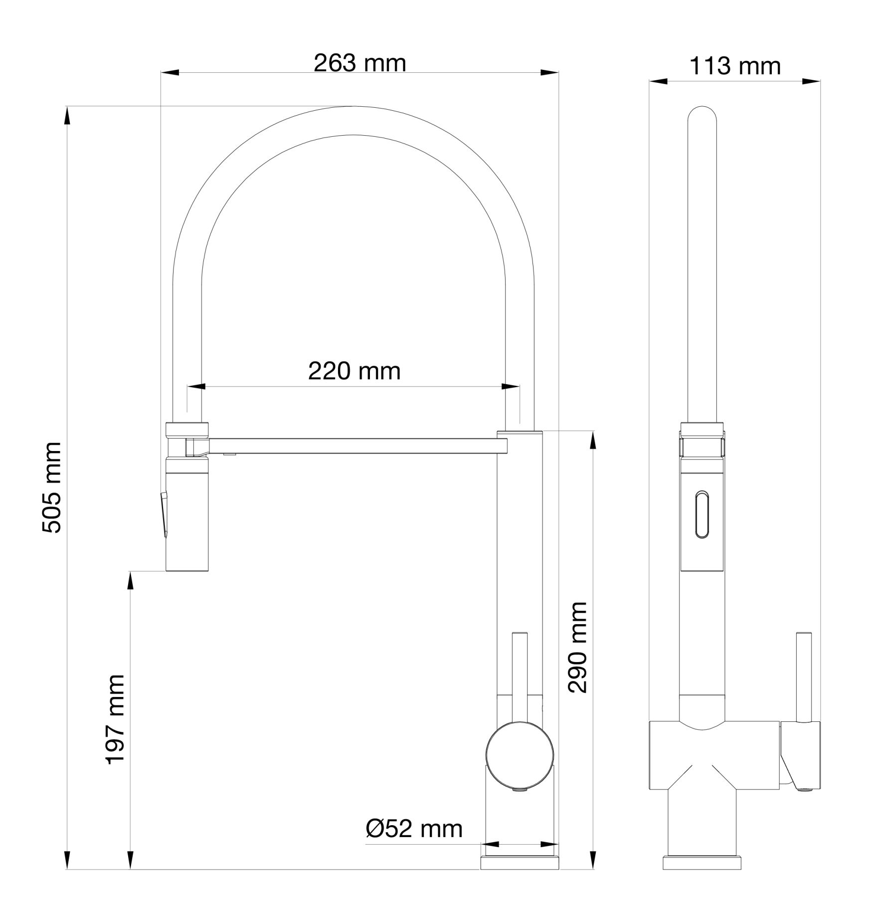 Смеситель для кухни Wonzon & Woghand WW-88438003-MB с гибким изливом чёрный матовый