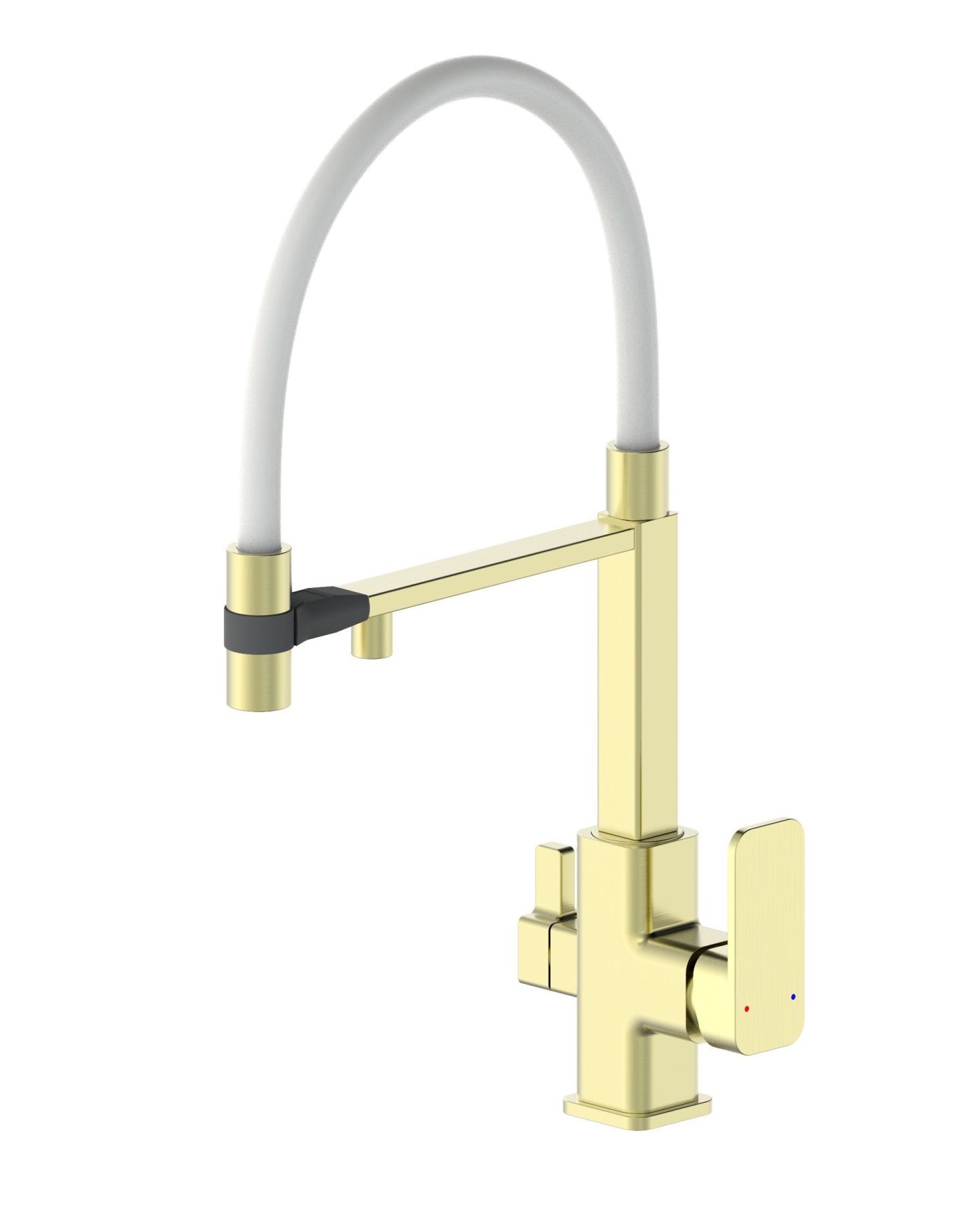 Смеситель для кухни Wonzon & Woghand WW-88458012-BG?MW) с гибким изливом и подключением фильтра брашированное золото/белый купить