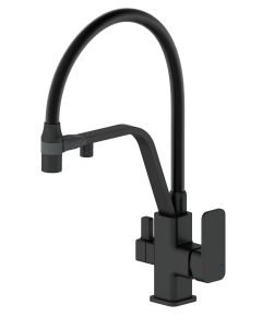 Смеситель для кухни Wonzon & Woghand WW-88458013-MB с гибким изливом и подключением фильтра чёрный матовый