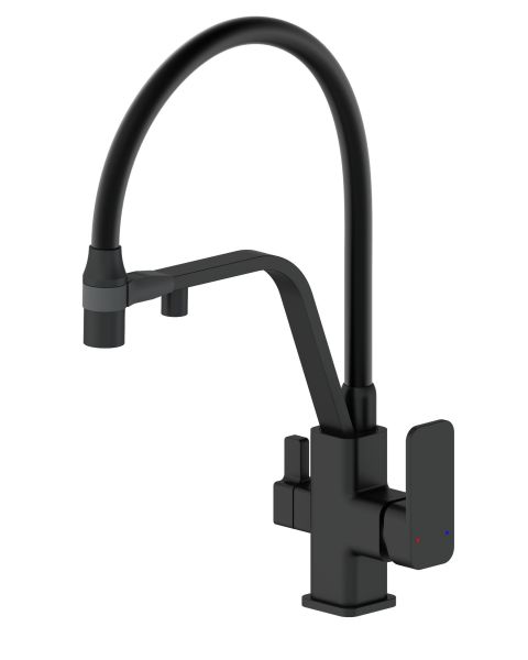 Смеситель для кухни с гибким изливом и подключением фильтра WONZON & WOGHAND, Черный матовый (WW-88458013-MB)