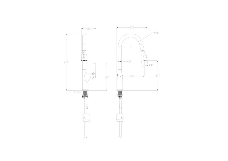 Смеситель для кухни с выдвижным изливом WONZON & WOGHAND, Черный матовый (WW-AE54123-MB)