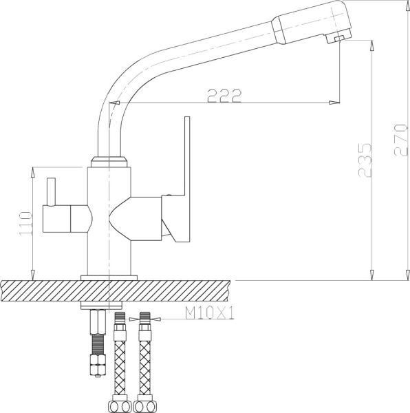 • Высота смесителя: