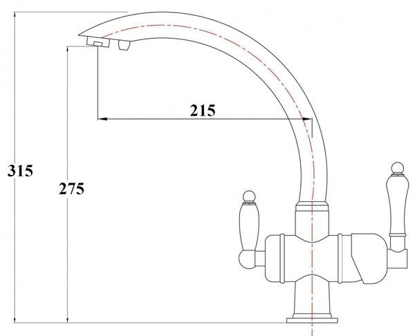 • Высота смесителя: