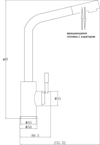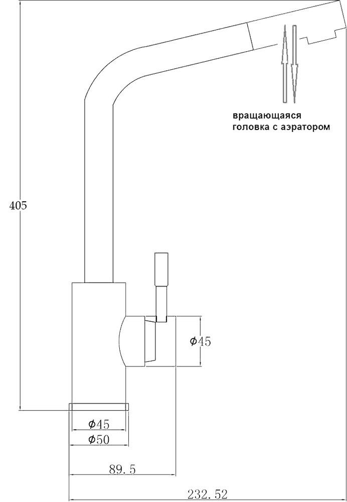 • Высота смесителя: