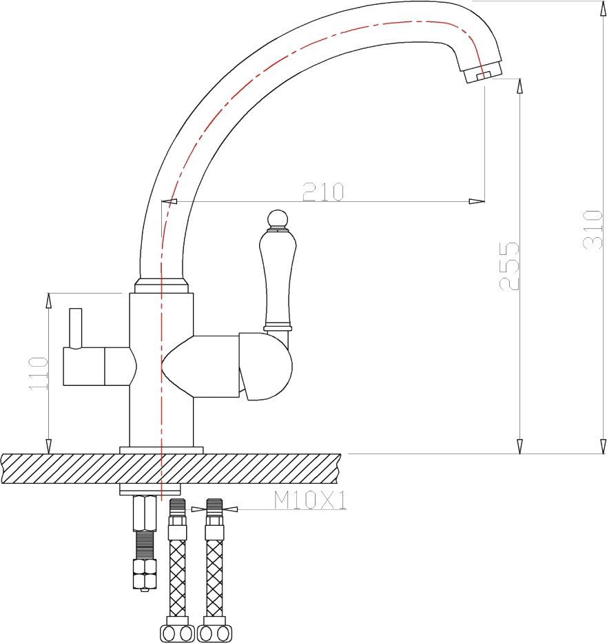 • Высота смесителя: