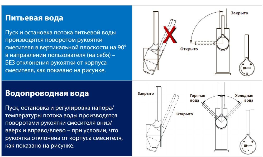 • Керамический картридж 35 мм с функцией включения питьевой воды