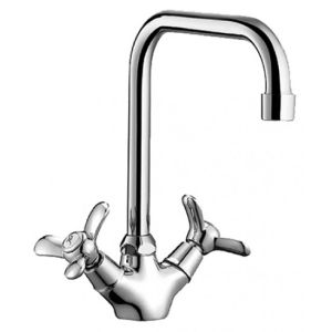 Смеситель для кухни двуручный с высоким поворотным изливом 260 мм Rossinka Q02-72 , хром.