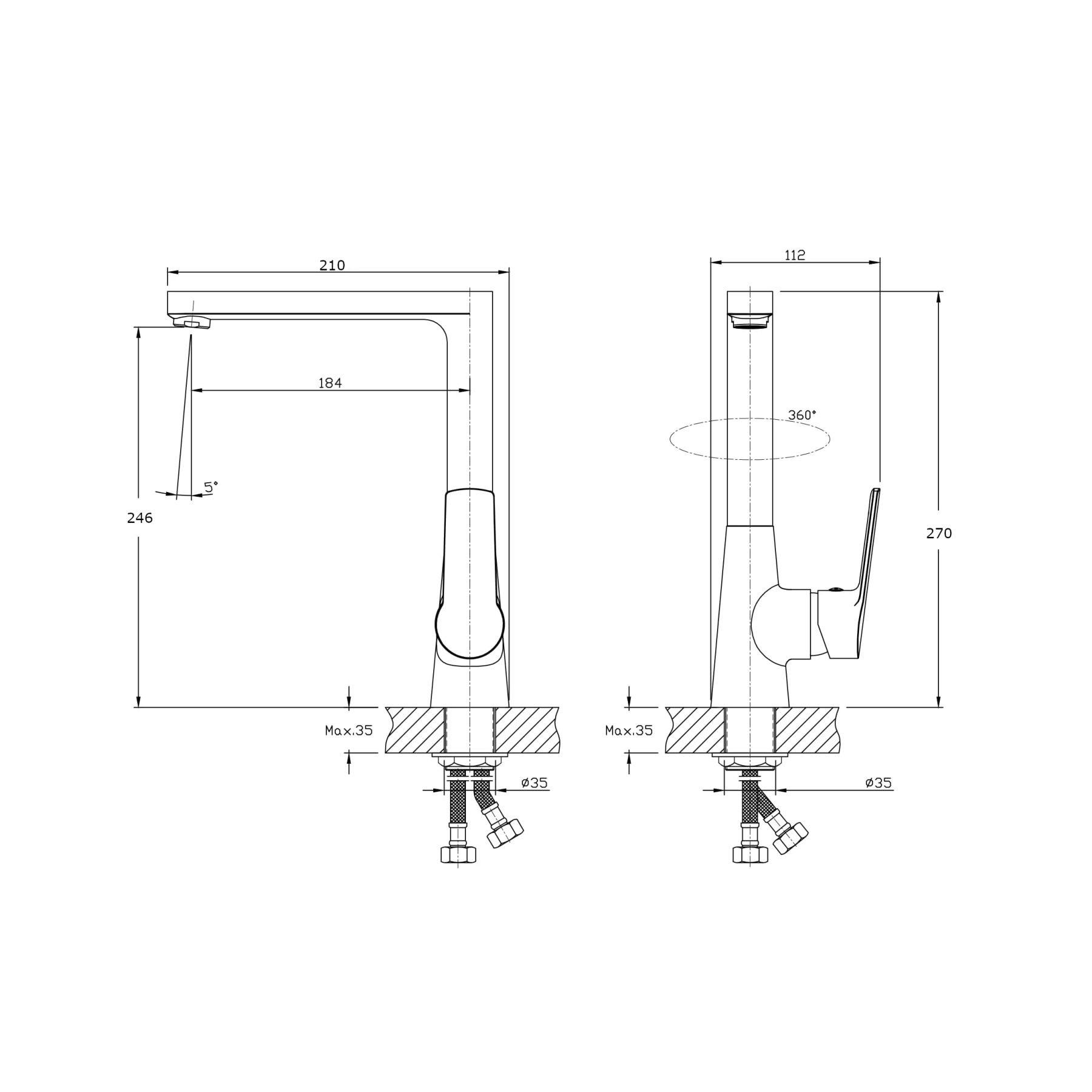 Смеситель для кухни с поворотным изливом RUSH Balearic арт. BA3935-23 с металлической ручкой имеет рычажное управление. В смеситель установлен картридж D-35 (RSH102) с керамическими пластинами. Высота смесителя 270 мм. Излив поворотный 360гр, 184 мм. Высота излива до аэратора 246 мм. Аэратор изготовлен из пластика с нержавеющим корпусом, угол наклона аэратора- 5 гр. В комплекте гибкая подводка с латунными гайками 35см - 2 шт, присоединительная гайка S-32(34)мм., втулка-31мм, фум-лента, индивидуальный пакет, паспорт, гарантийный талон.