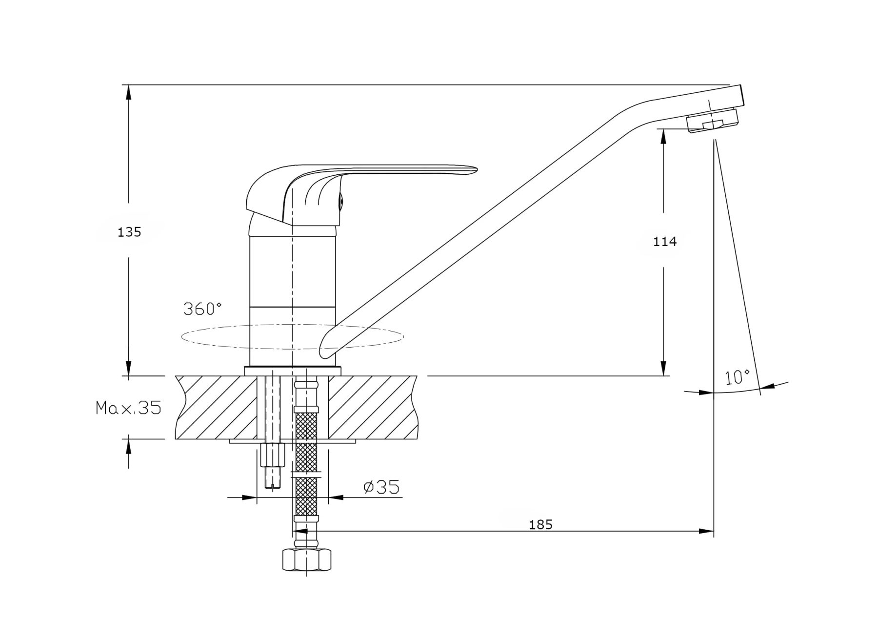 Смеситель для кухни с поворотным изливом RUSH Fiji арт. FI1835-25 из коллекции Fiji с металлической ручкой и имеет рычажное управление. В смеситель установлен картридж D-35 (RSH102) с керамическими пластинами. Излив поворотный 360гр, 185 мм. Высота излива до аэратора 114 мм. Аэратор изготовлен из пластика с нержавеющим корпусом, угол наклона аэратора- 10 гр. В комплекте гибкая подводка с латунными гайками 35см - 2 шт, универсальная присоединительная группа (шпилька-2шт), фум-лента, индивидуальный пакет, паспорт, гарантийный талон.