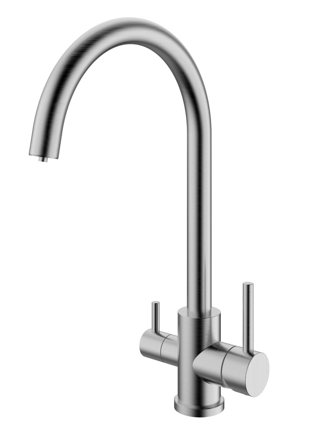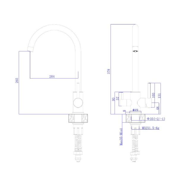 Смеситель для кухни с подключением к фильтру с питьевой водой RUSH арт. SUS9035-37 с металлической ручкой изготовлен из нержавеющей стали SUS304 и имеет рычажное управление. В смеситель установлен картридж D-35 с керамическими пластинами. Высота смесителя 378мм. Излив поворотный 204мм. Высота излива до аэратора 265мм. Аэратор изготовлен из пластика с нержавеющим корпусом. В комплекте кран-букса с керамическими пластинами (для крана с питьевой водой) гибкая подводка с гайками 40 см - 2шт, универсальная присоединительная группа, фум-лента, индивидуальный пакет, паспорт, гарантийный талон.