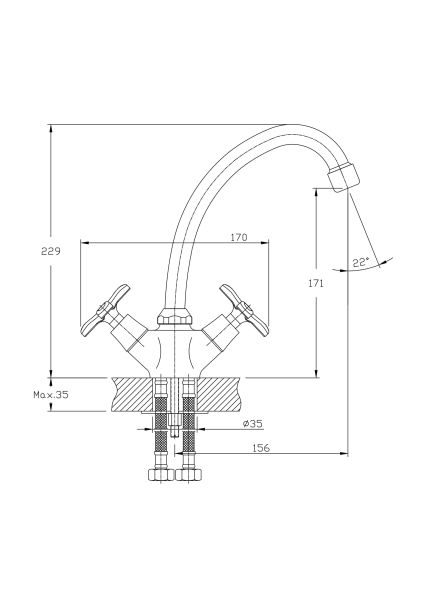 Смеситель для кухни с высоким, поворотным изливом RUSH арт. SA5350-22 с металлической ручкой из коллекции Sakhalin изготовлен из высококачественной латуни и имеет вентильное управление. В смеситель установлены кран-буксы (RSH502) с керамическими пластинами. Высота смесителя 229 мм. Излив поворотный (360гр), 182 мм. Высота излива до аэратора 171 мм. Аэратор изготовлен из пластика с нержавеющим корпусом, угол наклона - 22 гр. В комплекте универсальная присоединительная группа (шпилька-2шт), гибкая подводка с латунными гайками 35см - 2шт, фум-лента, индивидуальный пакет, паспорт, гарантийный талон.