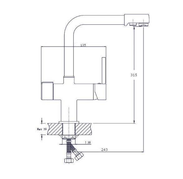 Смеситель для кухни с подключением к фильтру с питьевой водой RUSH арт. MS9035-33 изготовлен из нержавеющей стали и имеет рычажное управление. В смеситель установлен картридж D-35 с керамическими пластинами. Излив поворотный, 240 мм. Высота излива до аэратора 315 мм. Аэратор изготовлен из пластика с нержавеющим корпусом. В комплекте кран-букса с керамическими пластинами (для крана с питьевой водой), гибкая подводка с латунными гайками 35 см - 2шт, универсальная присоединительная группа, фум-лента, индивидуальный пакет, паспорт, гарантийный талон.