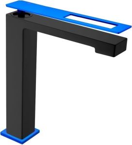 Смеситель для накладной раковины Boheme Q чёрный/синий 142-BUW