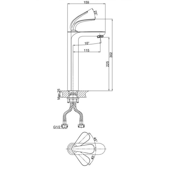 • Высота смесителя: