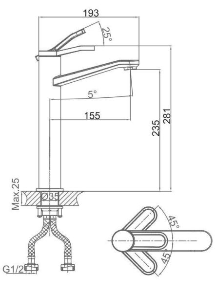 • Высота смесителя: