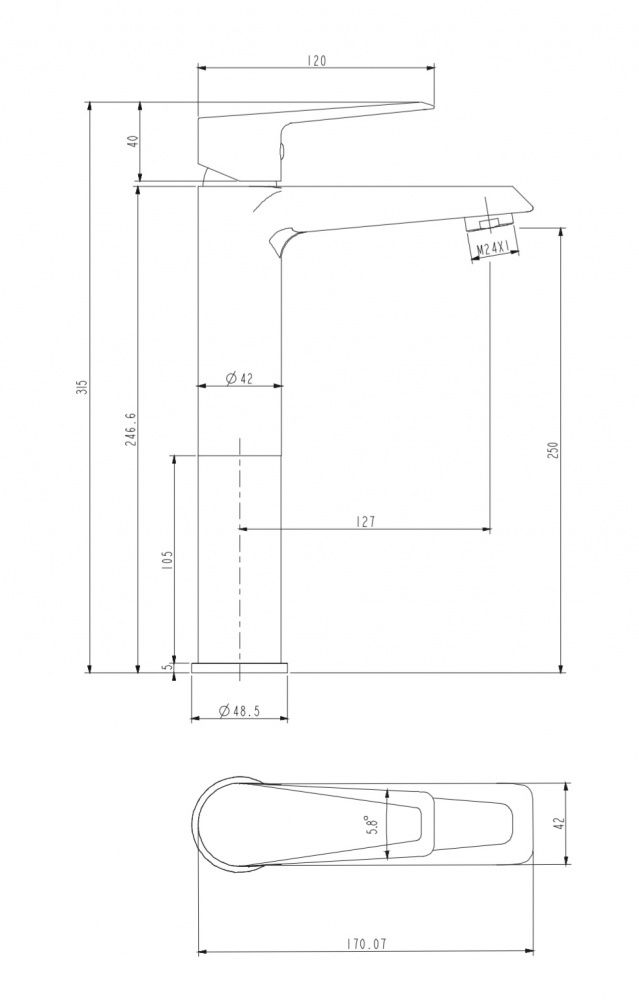 • Высота смесителя:
