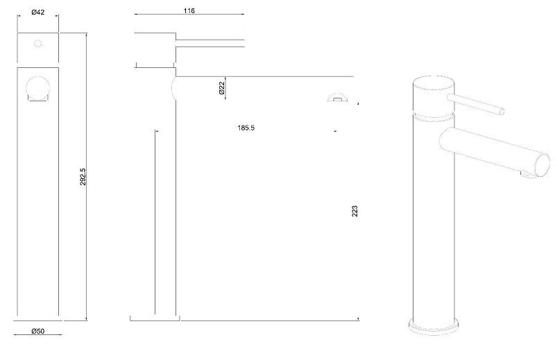 • Высота смесителя: