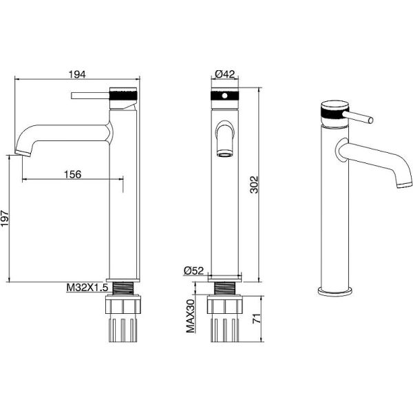 • Высота смесителя: