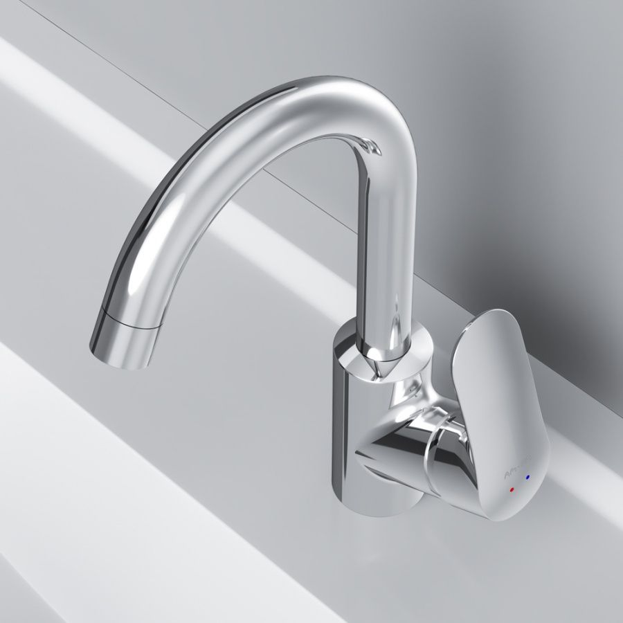 в котором учтены все детали: благодаря уникальной форме ручки капли воды скатываются, предотвращая образование налета, а не высыхают на поверхности.Эксклюзивная разработка: специально спроектированный для АМ.РМ керамический картридж SoftMotion 35 мм обеспечивает оптимальную регулировку температуры, а также позволяет выдерживать любые перепады давления. Высокий излив придает смесителю утонченный