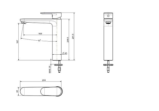 • Оснащен высоким изливом, удобен для мытья крупных предметов