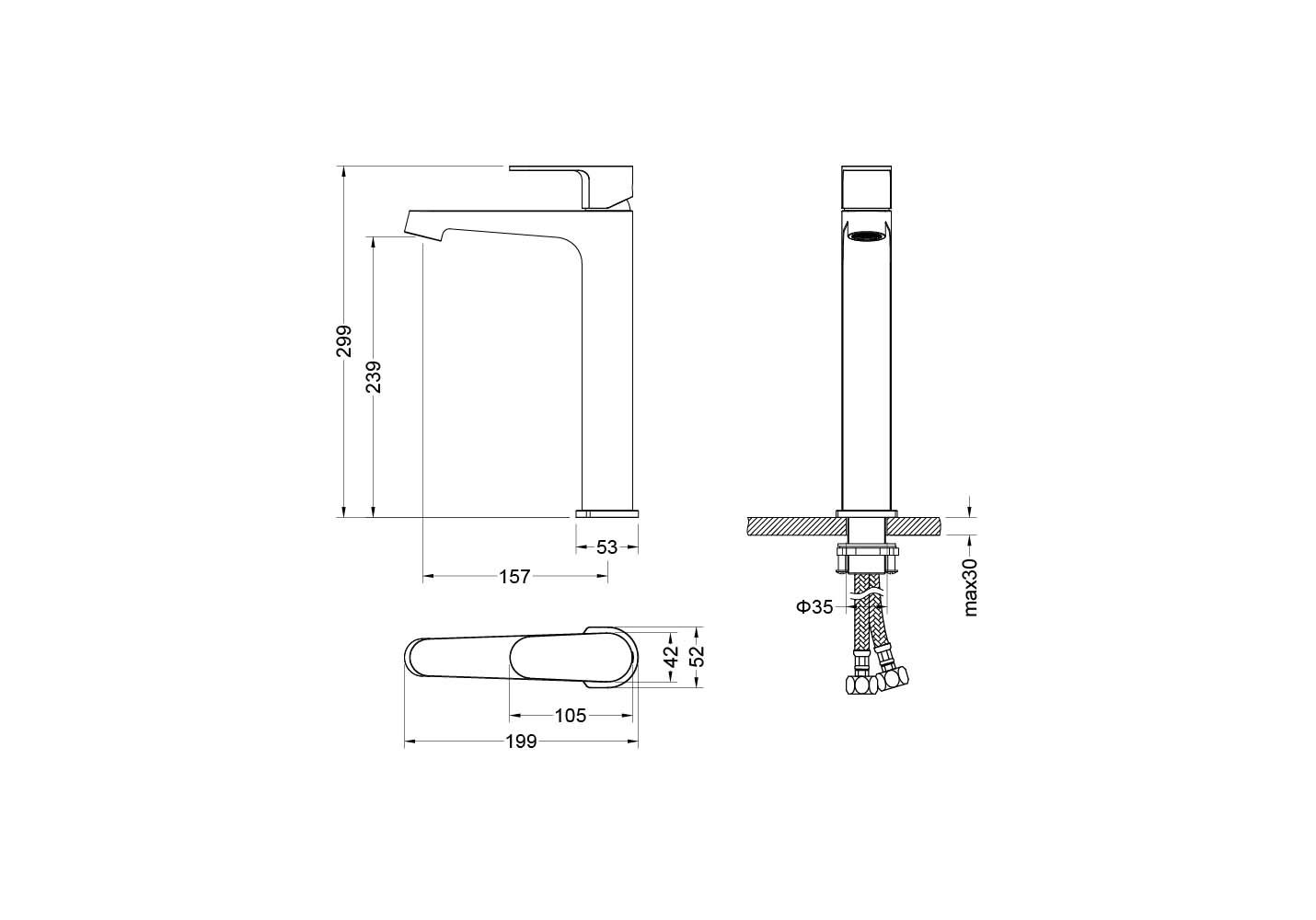 Высота излива (см): 23,9Длина излива (см): 15,7Аэратор: Neoperl, ШвейцарияГибкая подводка в комплектеДлина гибкой подводки (см): 60Тип резьбового соединения: M10Стандарт подводки: 1/2"Вращение излива: фиксированныйТип управления: рычажныйНазначение: для раковиныКоличество монтажных отверстий: 1 отверстиеПодключение к системе водоснабжения: гибкая подводкаМеханизм: керамический картридж Citec, ИспанияДиаметр картриджа (мм): 35