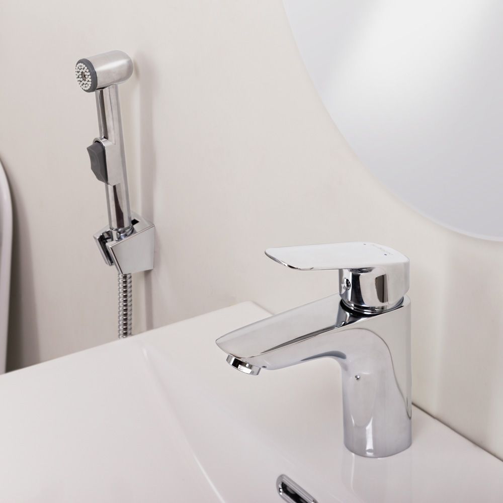 Смеситель для раковины без донного клапана с гигиеническим душем BelBagno DUE-LVM/HGN-CRM-W0 купить