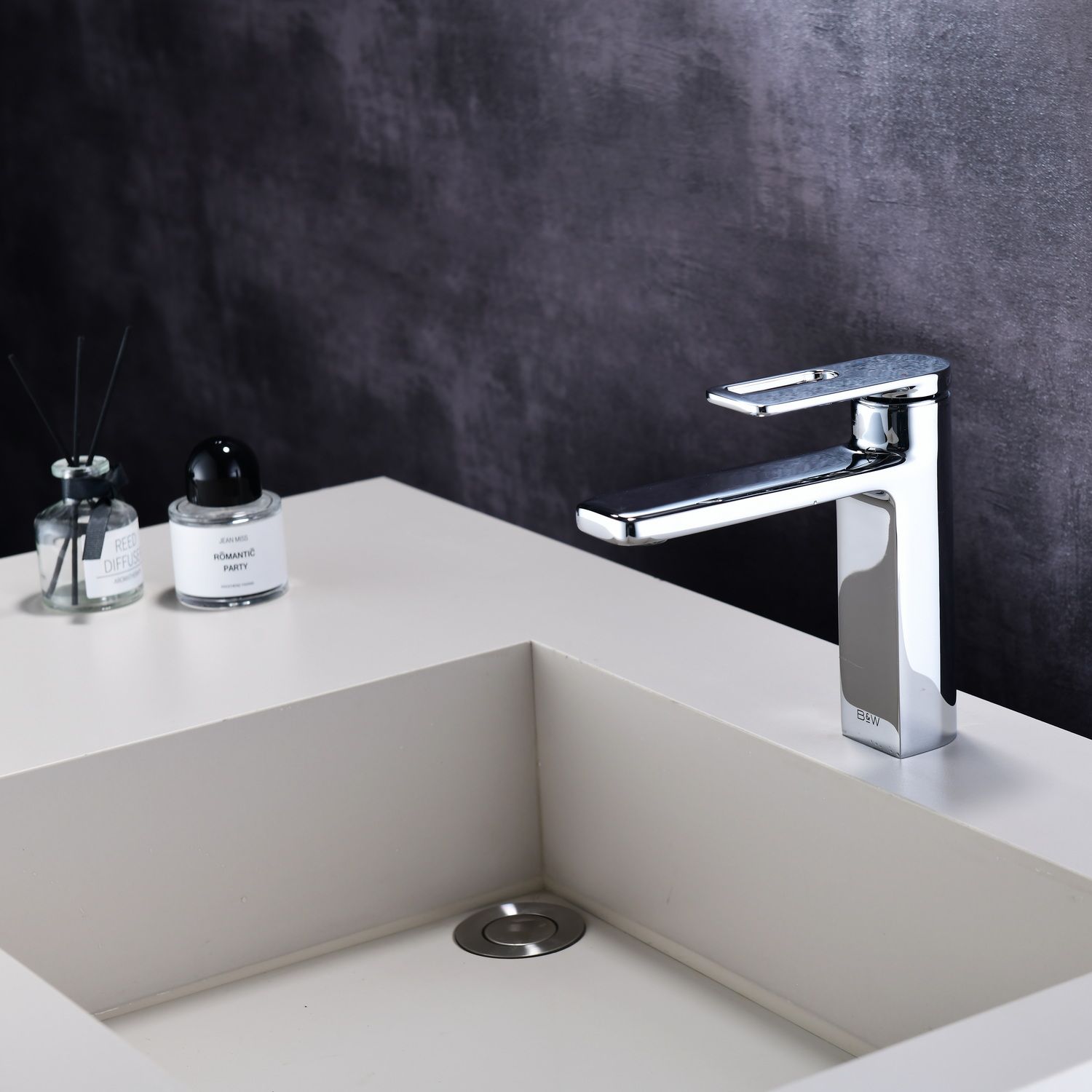 Смеситель для раковины датского производителя Black&White  в цвете глянцевый хром. Корпус выполнен из сантехнической латуни, безопасен для здоровья и обладает высоким ресурсом. Управления потоками воды осуществляется с помощью керамического картриджа, повышенной пропускной способности. Длинна излива составляет 17 см., что позволяет устанавливать изделие на большинство раковин и комфортно использовать для мытья рук.