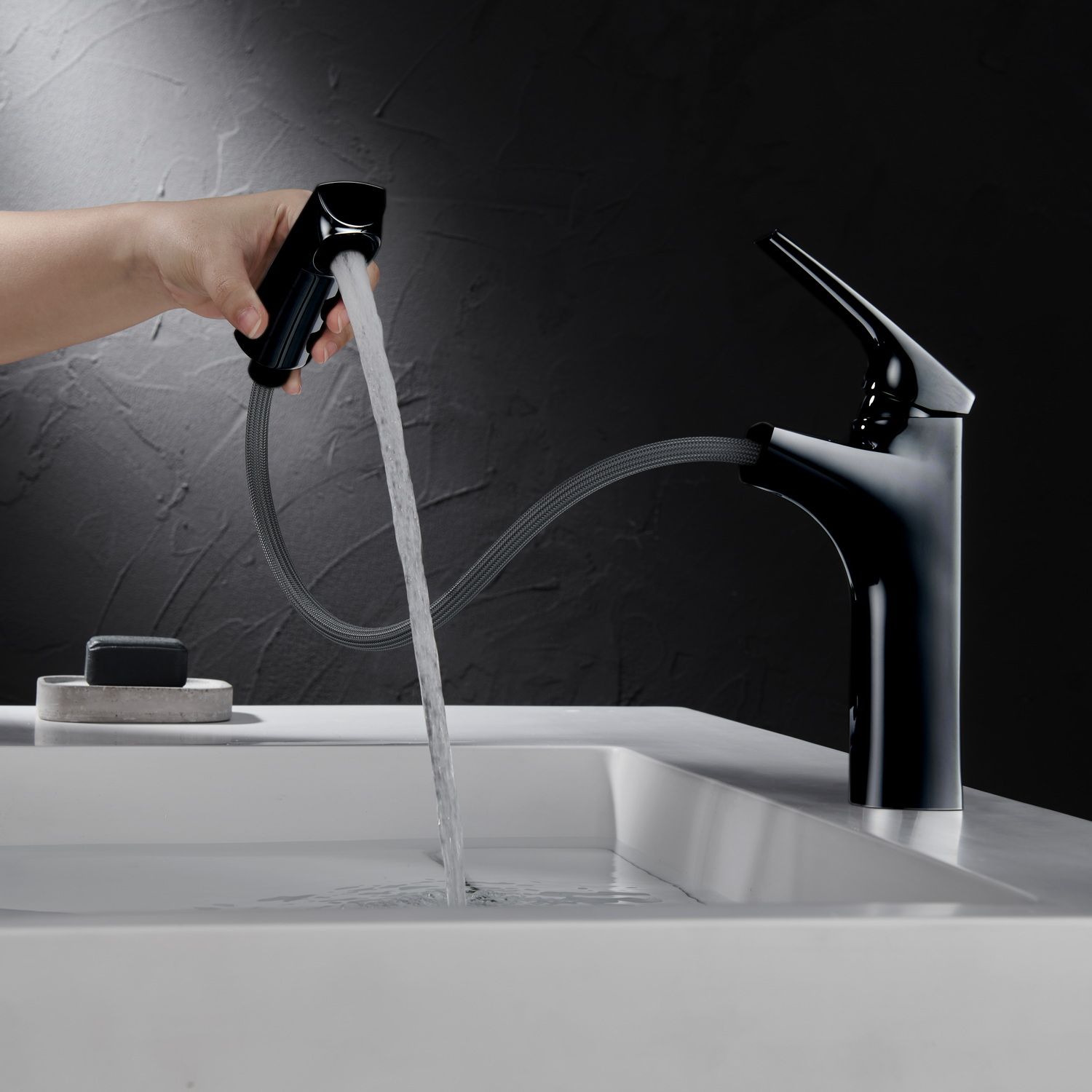 Смеситель для раковины Black&White Universe 7901B с выдвижным изливом чёрный матовый